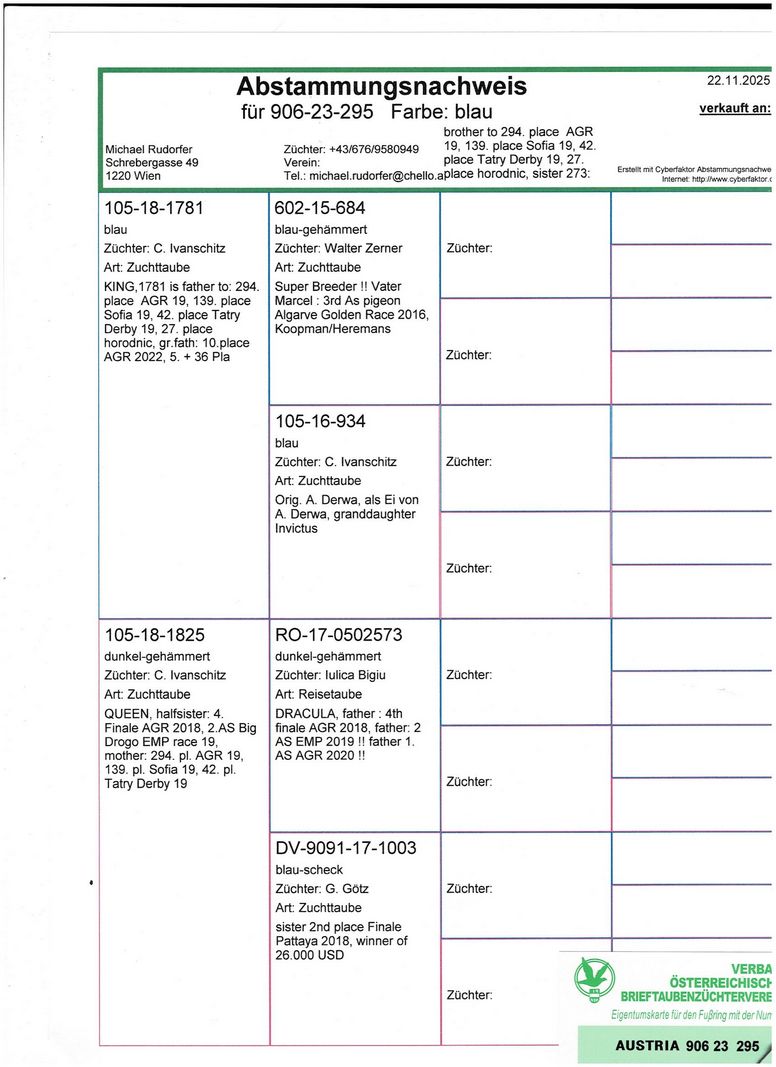 Serie porumbel: AUS-906-23-295 Michael Rudorfer