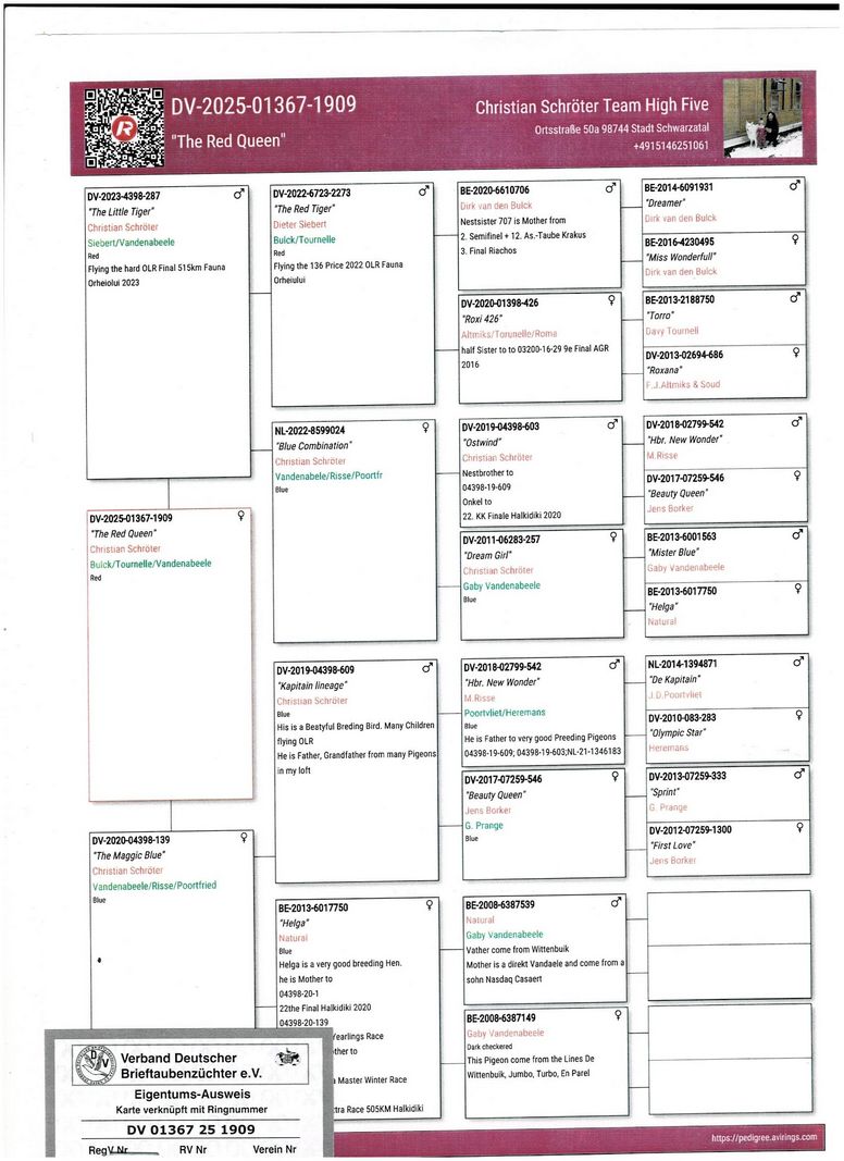 Serie porumbel: DV-01367-25-1909 Christian Schroeter Team High Five