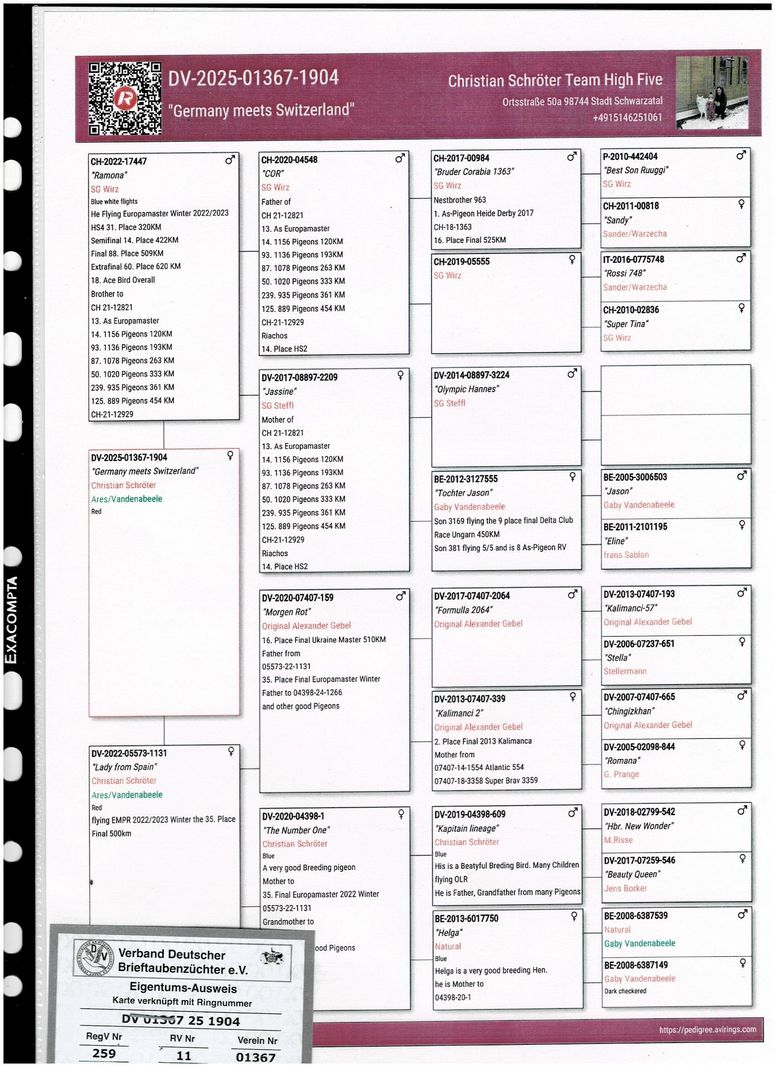 Serie porumbel: DV-01367-25-1904 Christian Schroeter Team High Five