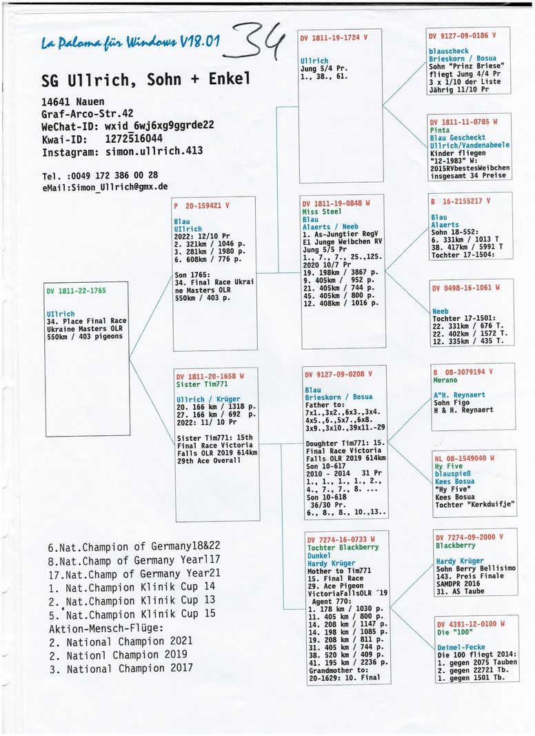 Serie porumbel: DV-1811-22-1765 SG Ullrich ,Sohn+Enkel
