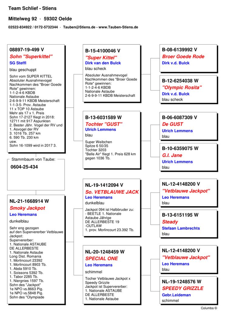 Serie porumbel: DV-0604-25-434 F (Orig.Team Schlief-Stiens)