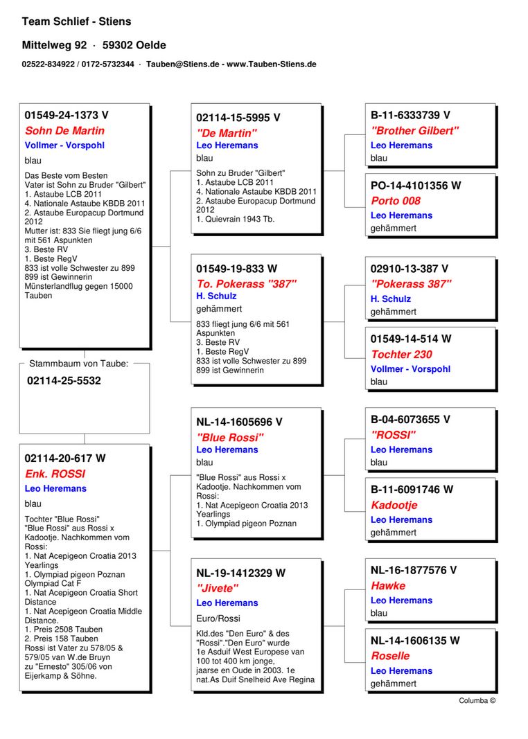 Serie porumbel: DV-2114-25-5532 M (Orig.Team Schlief-Stiens)