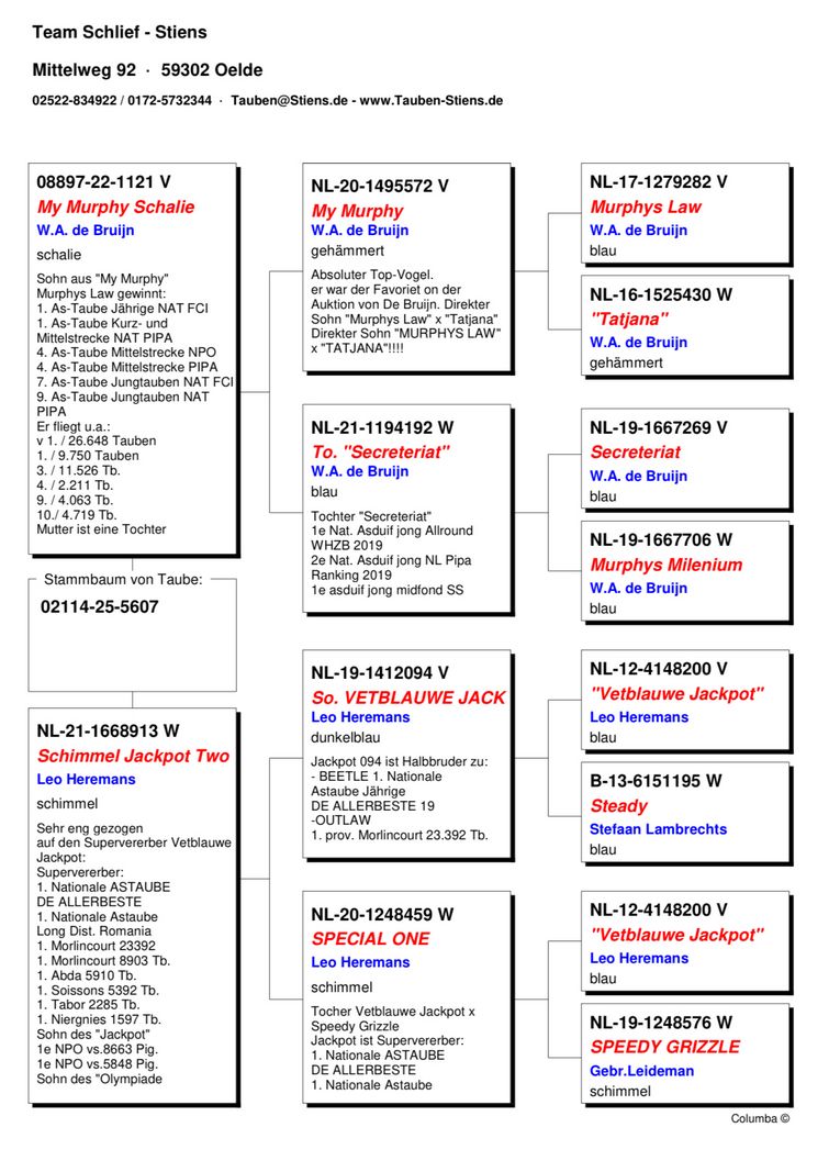 Serie porumbel: DV-2114-25-5607 M (Orig.Team Schlief-Stiens)