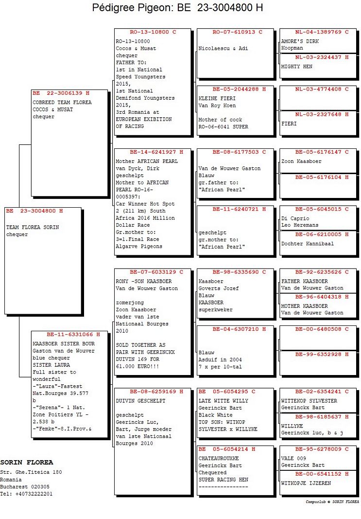 Serie porumbel: BE-23-3004800 Original Florea Sorin