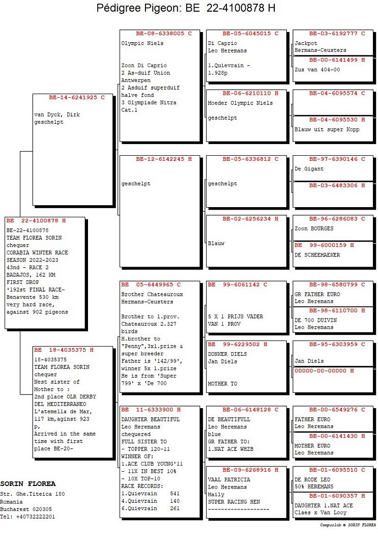 Serie porumbel: BE-22-4100878 Original Florea Sorin