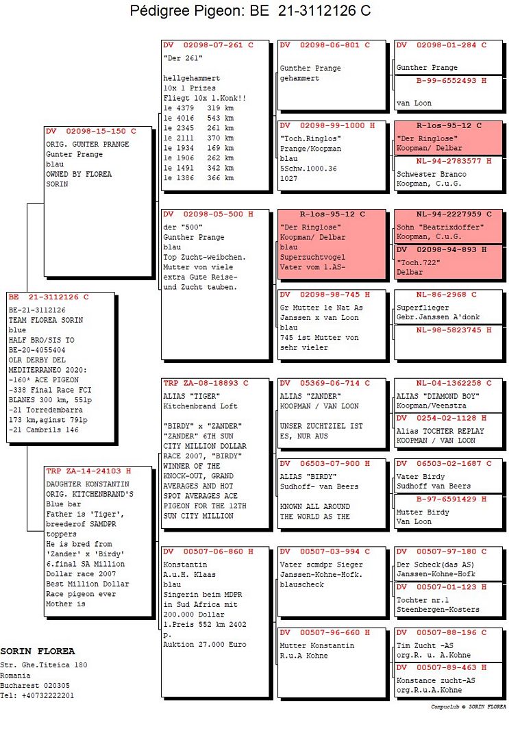 Serie porumbel: BE-21-3112126 Original Florea Sorin