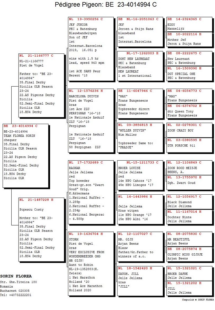 Serie porumbel: BE-23-4014994 Original Florea Sorin
