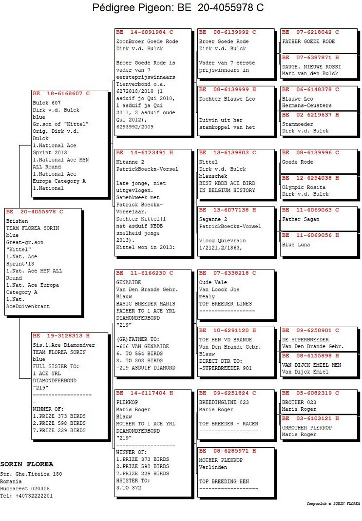 Serie porumbel: BE-20-4055978 Original Florea Sorin