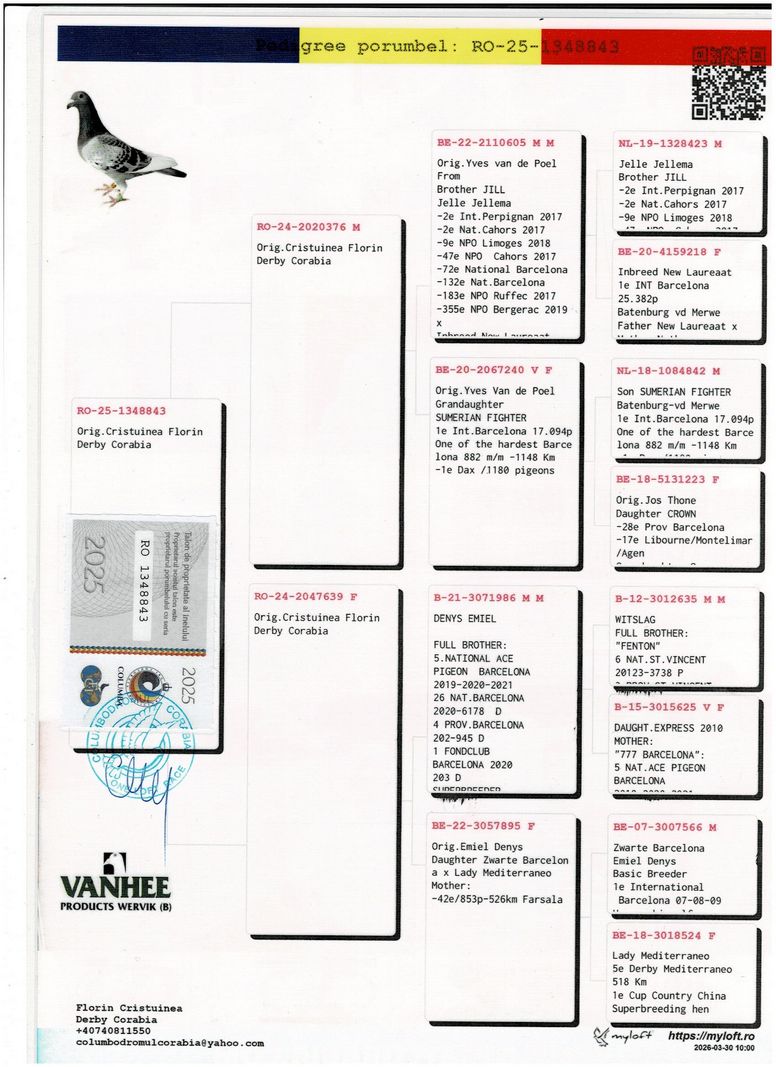 Serie porumbel: RO-25-1348843 Original Cristuinea Florin