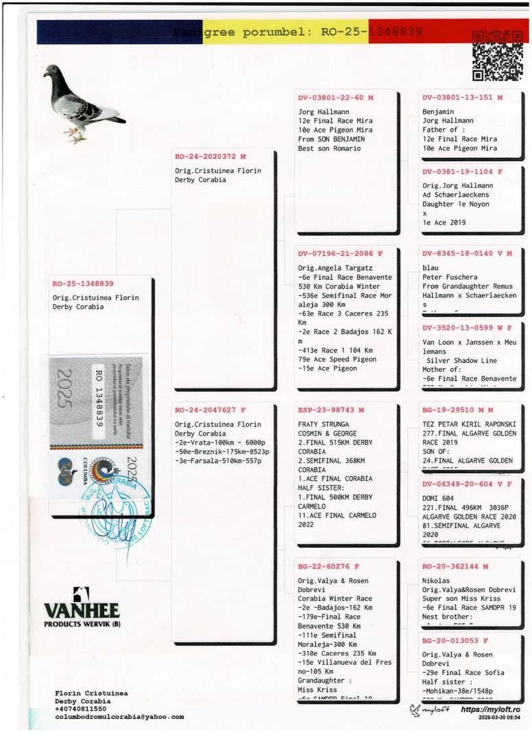 Serie porumbel: RO-25-1348839 Original Cristuinea Florin