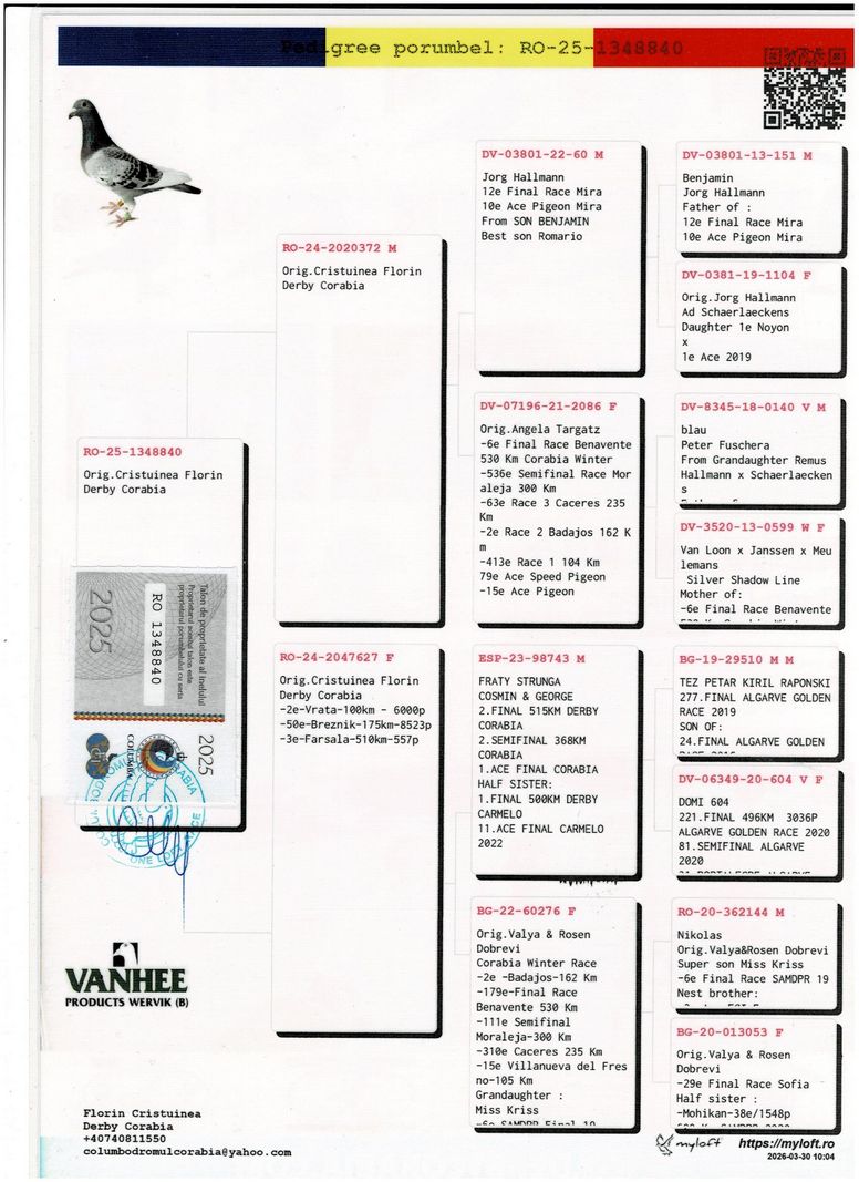 Serie porumbel: RO-25-1348840 Original Cristuinea Florin