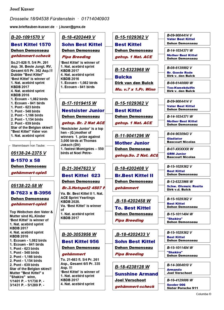 Serie porumbel: DV-05138-24-2375 JOSEF KUSSER